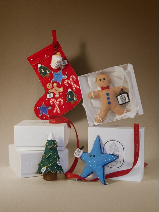 与此同时,四款由艺术家特别打造的三维立体毛毡挂饰将于Diptyque全球40家精品店内发售。每款挂饰限量出品200枚,冷杉、星星、姜饼人等节日元素栩栩如生,均为Lucy Sparrow为Diptyque冬日限量系列手工编织、精心刺绣的作品。