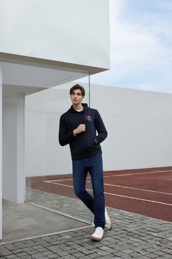 他以无比的细心和品味,精心挑选了来自法国的细腻色彩,与梦特娇品牌独有的文化雅致完美地融合在一起。红色在中国美学中象征着吉祥、喜庆和繁荣。代表着人们对美好生活的向往和追求。红色的热烈和激情,使得它在视觉上具有强烈的冲击力。白明杰决定采用红色墨水,以此向中国艺术传统表达敬意,彰显了梦特娇对中国文化的尊重与仰慕。