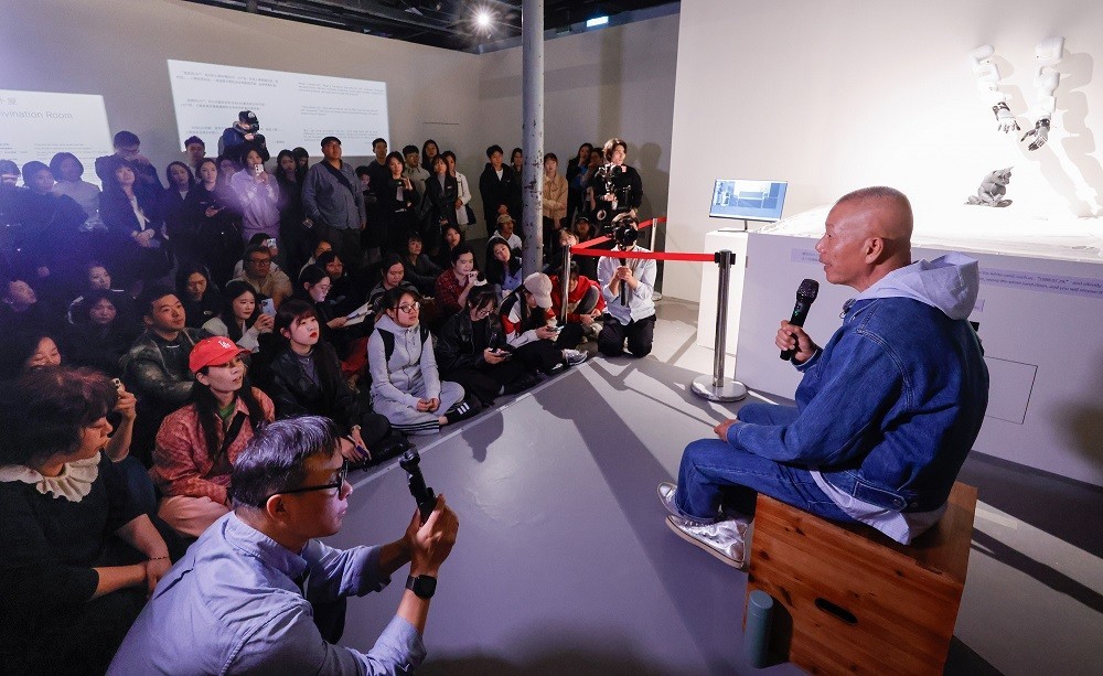 开幕当日的下午,蔡国强还和约50位澳门本地大学教授、大学生及青年艺术家,在展厅内就澳门艺术、青年人才的未来发展,人工智能与时代,艺术创作开放包容等话题进行了1个多小时的愉快交流与互动。