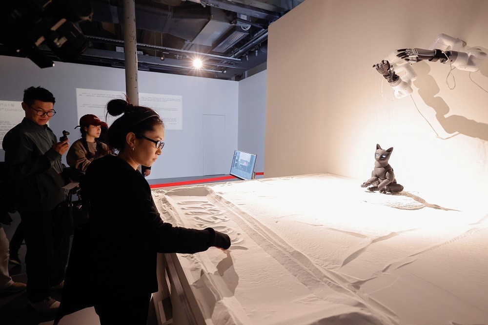 【2024年11月23日,澳门】时值澳门回归祖国25周年,美高梅与著名当代艺术家蔡国强再次相聚澳门,在妈阁塘片区的海事工房1号举办由蔡国强与团队量身开发的AI模型cAI™全球首次个展《cAI™:灵魂扫描》。展览周期由2024年11月24日至2025年6月1日,展览呈现cAI™在蔡国强引导下深度学习澳门丰富历史和人文精神后,为澳门量身打造的约20组全新作品。从cAI™生成的自述、到“火药画家cAI™”的首次“画展”、“烟花大师cAI™”与澳门观众共创烟花的互动装置,以及此次特别为海事一号空间内由“占卜师cAI™”打造的机械臂互动装置《cAI™占卜屋》,让展览充满探寻的乐趣。