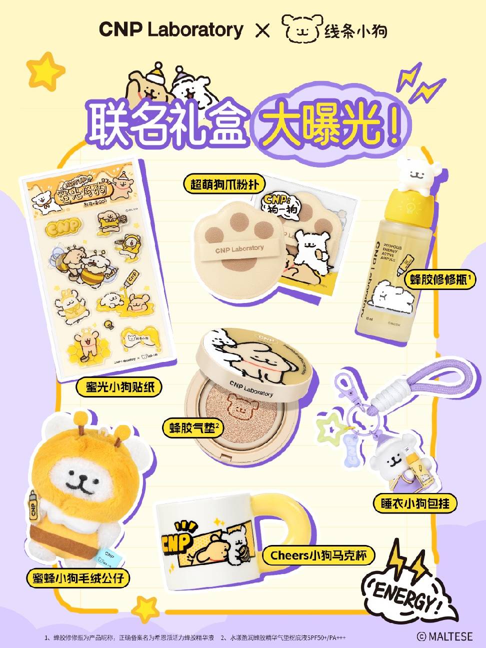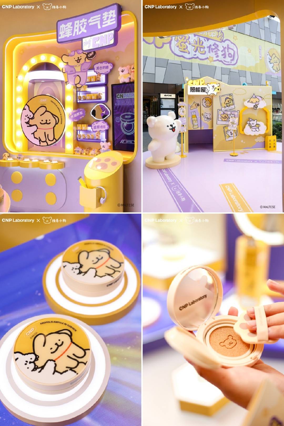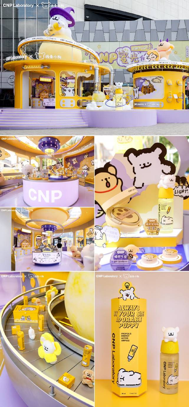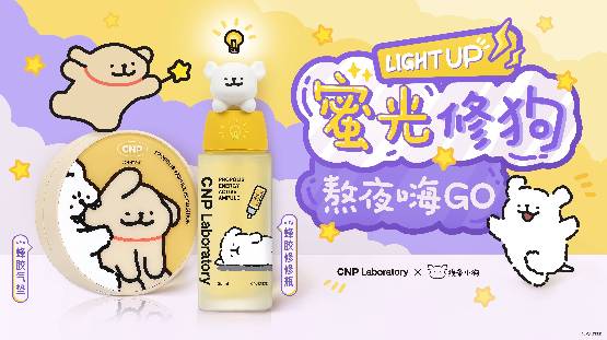 2024年10月,韩国专研皮肤学功效型护肤品牌CNP官宣联名线条小狗IP,以「蜂胶修修瓶&蜂胶气垫」为组合的明星产品为切入点,深度绑定熬夜场景。CCE集团助力打造联名大事件:蜜光修狗 熬夜嗨GO。