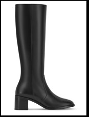 ESME ZIP BOOT 黑色牛皮革、胡桃棕羊皮革圆头侧拉链长筒靴 RMB 6,390