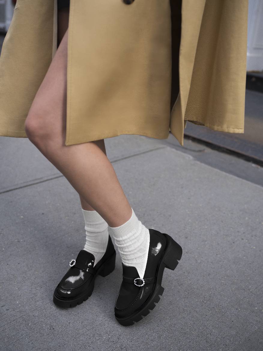 SOHO LEIGHTON LOFER 黑色沟纹厚底水晶搭扣乐福鞋 RMB 4,800