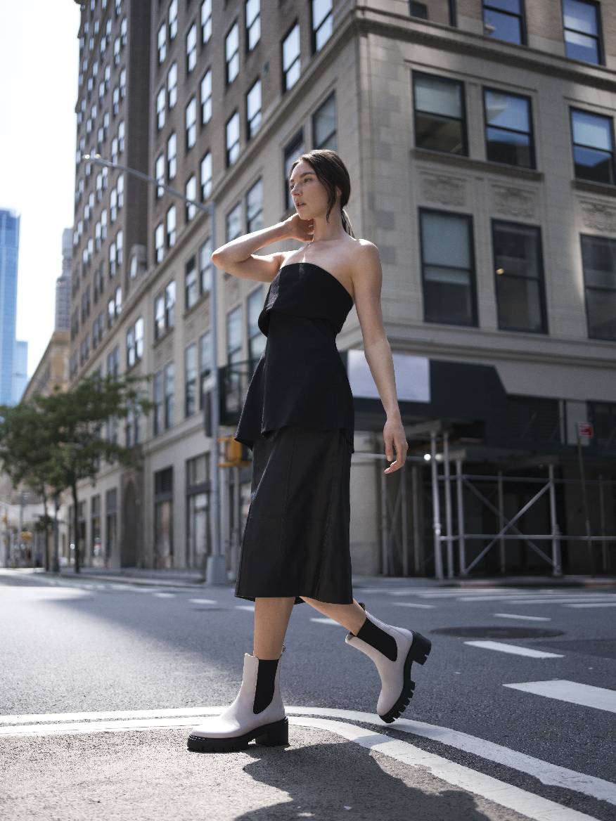 时下,内心笃定的都市女性,野心不仅成就其事业上的进取,还使其更加关注自我内心的感受。她们深谙实用主义精神,经过时间检验永不过时的经典款式以及精益求精的舒适贴合度成为她们的不二之选。5050过膝靴作为SW的标志性靴款,自1993年问世以来,便以其独特的奢华皮革与弹力后背拼接结构,赢得了全球时尚界的广泛赞誉。本季,5050系列在舒适度和穿着感上持续升级焕新,在保留经典拼接材质基础上融入更具现代感的方形鞋头,以及厚底粗跟设计,从短靴到过膝靴,肆意游走于全天候多元化场景。除此之外,都市新贵SOHO系列也再填新成员——帅气随性的切尔西靴和锐意有型的膝下靴,无论搭配都市工装,亦或是质感裙装,轻松引领时尚风潮。