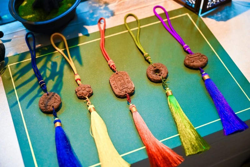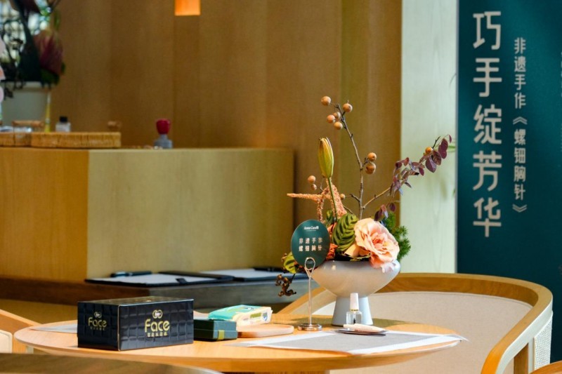 在会场3F,安娜凯瑟莉Anna Caselli以非遗蜀锦为题,为宾客们呈现了一场别开生面的的蜀锦静态展与蜀锦大秀。精致的面料、精准定位剪裁、重手工制作,安娜凯瑟莉Anna Caselli以匠心雕琢具有艺术美感的作品,让在场宾客体会到了非遗之美。而在会场5F,这里正等待着宾客们的是一场亲身体验非遗手作的美妙邂逅。螺钿胸针以其细腻的工艺和独特的设计吸引了众人的目光,每一件作品都如同微缩的艺术珍品,讲述着古老技艺与现代审美的融合。而古法香牌的制作体验,更是让宾客们亲手触摸到了历史的温度,淡淡的香气仿佛穿越时空,将千年前的雅致生活带到了眼前。