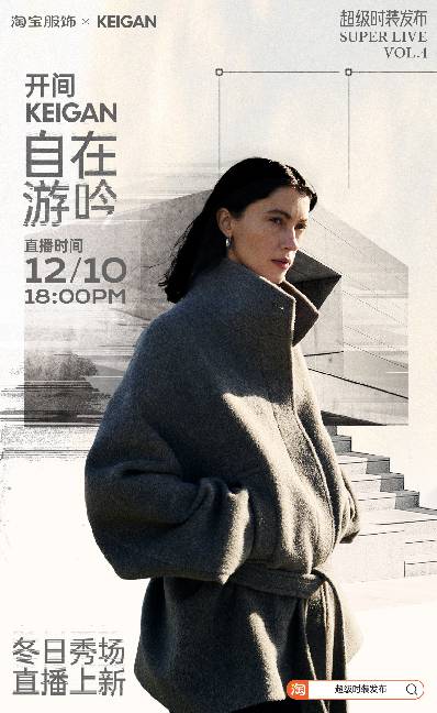 品牌基因中自带建筑风格元素的开间KEIGAN,其服饰在兼具极简、文艺、休闲的同时,也有利落的剪裁和结构化的设计。因此,此次「超级时装发布」直播中,淘宝服饰将直播间搬进了一栋充满结构感的立体建筑里。前不久在杭州举办的香奈儿大秀的直播主持人兼模特Linda将作为本场直播的嘉宾。