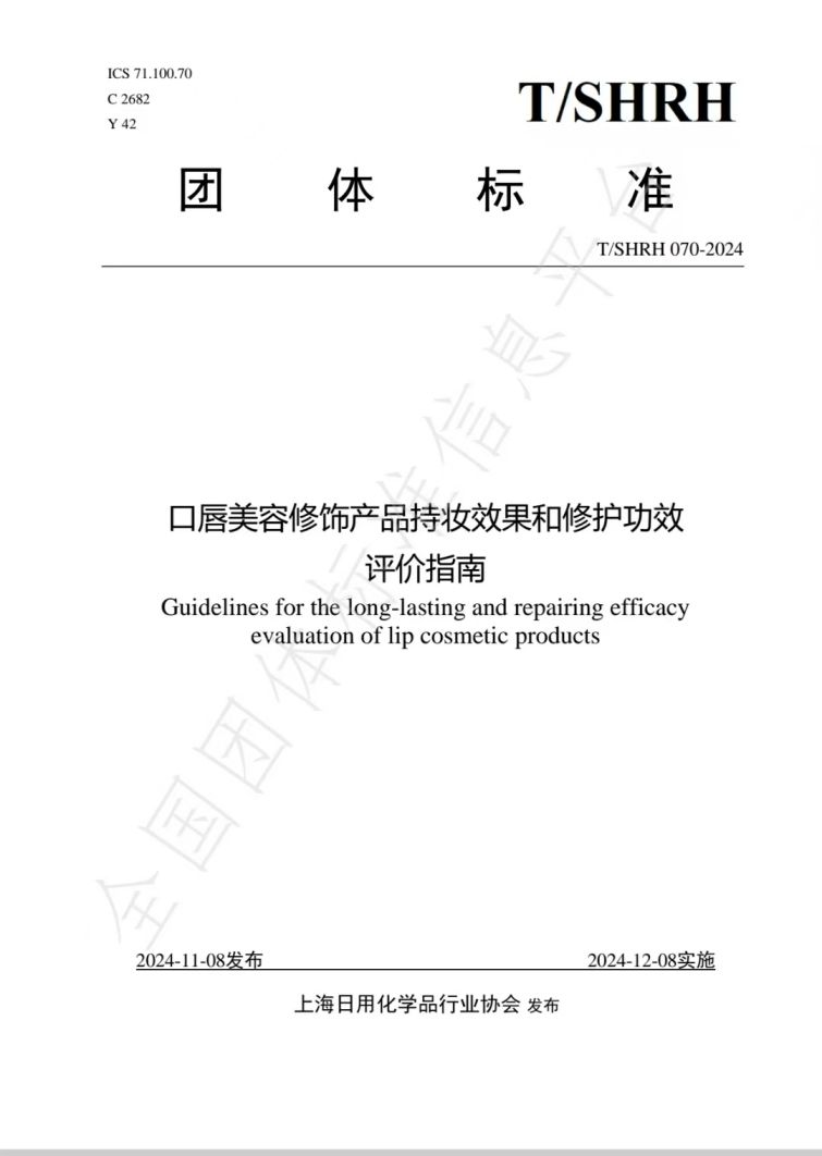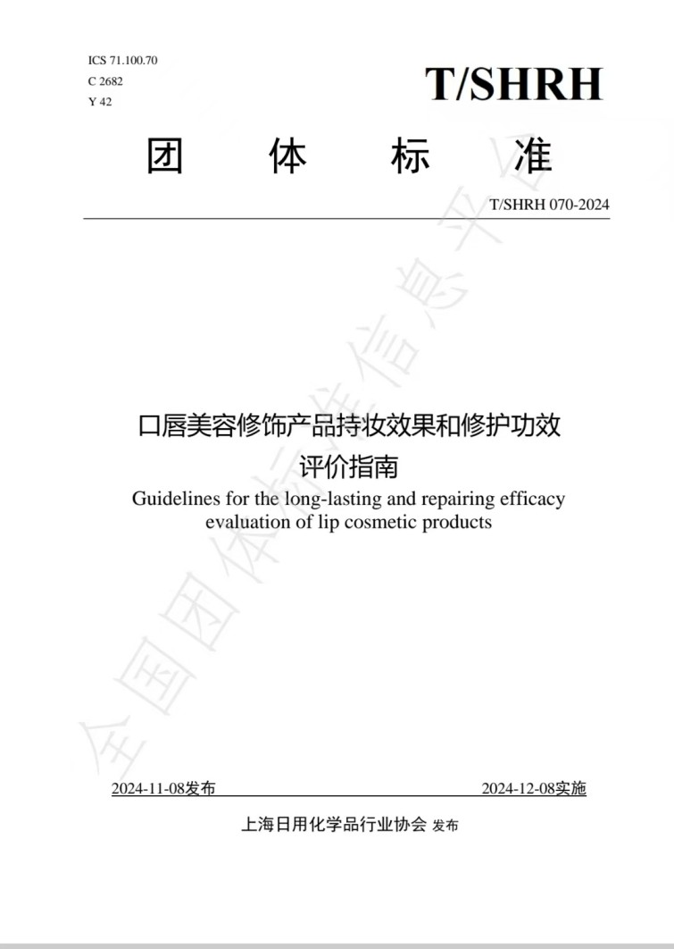 (图:上海日用化学品行业协会发布《口唇美容修饰产品持妆效果和修护功效评价指南》)
