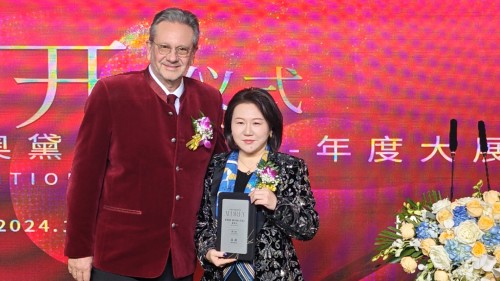 梦玙集团创始人高鈃女士作为红颜会终身理事长 更作为本次奥黛丽·赫本(中国)董事会副主席在现场接授了肖恩·赫本先生的授牌并合影留念。