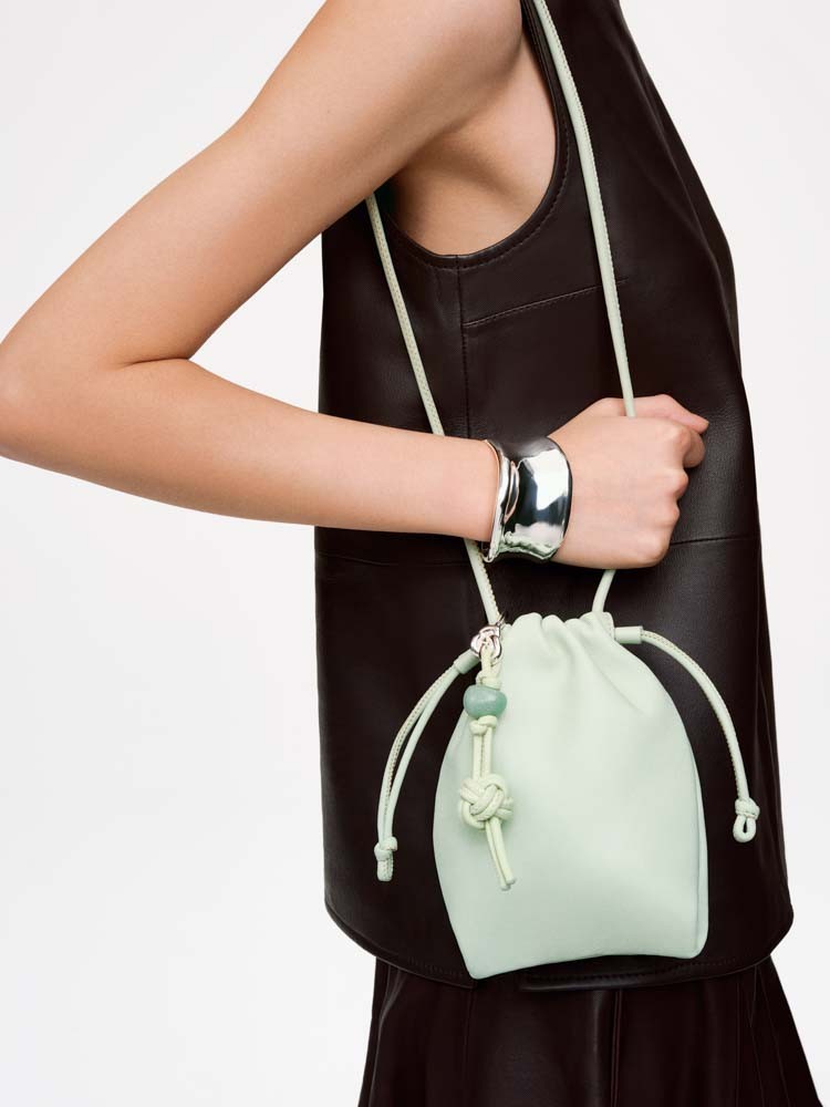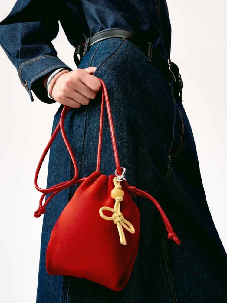 本次的新春系列重点呈现四款经典重塑的抽绳式束口皮革手机袋与扭结式钥匙扣,融汇现代设计与传统编结艺术,展望对新年新机遇的希冀。每款扭结式钥匙扣点缀独特的手工装饰元素,可根据色彩搭配将钥匙扣与皮革手机袋自由混搭,在别具一格的造型中彰显独特个性。