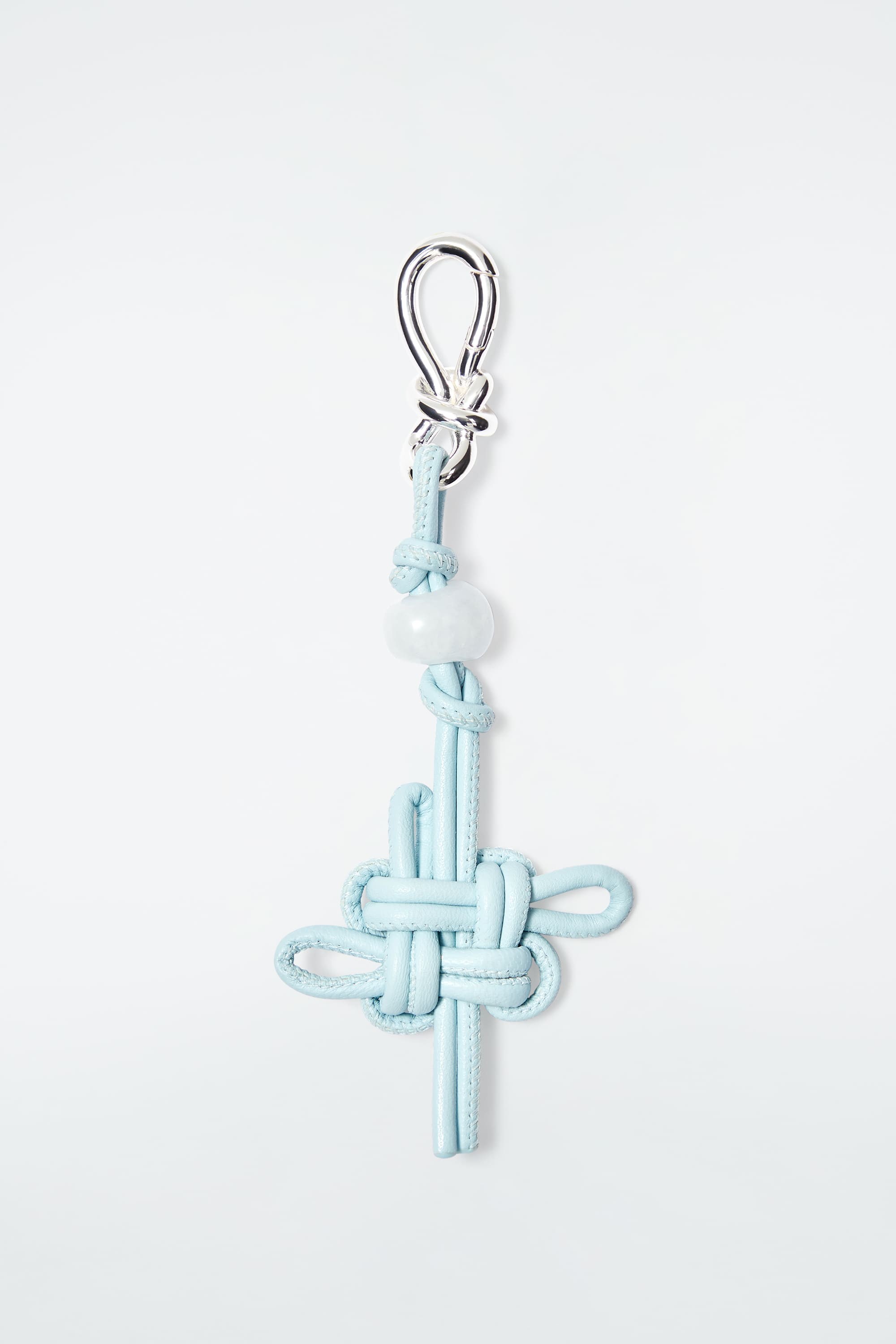 将吉祥寓意编织于各色扭结式钥匙扣之中,以匠心趣艺传递缤纷新春祝福。轻盈明亮的明黄色渲染着蕴含繁荣兴盛的万字结,加以温润的黄玉点缀,象征光明灿烂,福寿绵延;静谧淡雅的豆绿色与祝福心想事成的冰花结融合,吊饰以清透的玉石装点,祈愿诸事顺遂,梦想成真;朦胧宁静的天青蓝笼罩着寓意和谐如意的平安结,缀以白水晶,象征着平和顺遂,自在安然;浪漫温婉的胭粉色与双耳结好事成双的含义相串,饰以柔和的粉晶,象征天作之合,颂赞真挚不澈的爱。