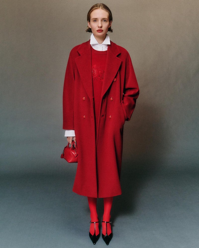 新春系列推出特别版Max Mara 101801 经典大衣。量身打造的精致真丝斜纹衬里,以绚丽的花卉刺绣装点紧贴背部的内衬。该别致衬里亦用于泰迪熊经典大衣,与优雅精致的短款廓形相得益彰。两款经典大衣均以活力蓬勃、充满热情的新春红色演绎,迎启农历新年,承载欢悦繁盛。