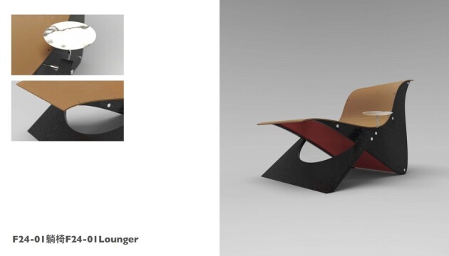 F24-01躺椅是一款充满探索精神与经典韵味的作品。它并不拘泥于常规的家具设计,而是在突破传统的结构形态中,巧妙地融入了经典的美学元素,创造出一种既先锋又 timeless 的设计语言。传达了“突破与经典”并存的设计理念。