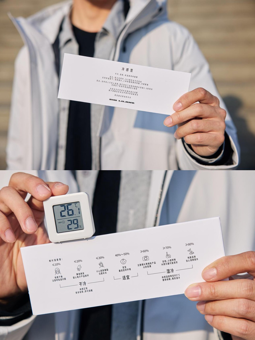 近日,一款充满巧思的品牌周边在各大社交平台火爆出圈,成为热门话题,它就是利郎简约男装的创意“冷感签”。这款“冷感签”的设计初心,源自于利郎对人们在湿冷环境中所面临困境的深刻洞察与人文关怀。通过精准地检测湿度指数,让用户及时了解所处环境的湿度状况及对人体可能产生的影响,从而做好保暖措施,抵御湿冷侵袭,共同度过一个温暖且美好的冬天。