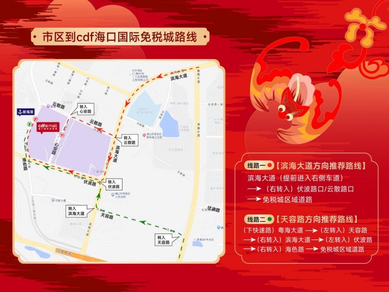 (图:春节期间cdf海口国际免税城进店路线)