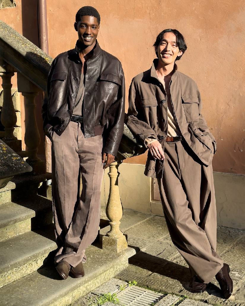 2025春夏系列中,Ferragamo透过摄影师Juergen Teller的镜头,立足于品牌的悠久传承,探索了创意总监Maximilian Davis的当代愿景。本次广告大片取景于托斯卡纳曼奇康酒庄(Villa Mangiacane)及其周边风光。Davis解读道:“我们期望真实且直接地展示Ferragamo的品牌精髓,既能呈现品牌优雅的古典主义风格,同时以别出心裁的方式为其添注意趣。”在宅邸的文艺复兴时期壁画前,在十四世纪建筑与如诗如画的庭院中,刘雯、Claudia Campana、Diego Gomez与Naoki Sumiya展露自在姿态与随性格调,诠释2025春夏系列的本质。他们或站立于餐桌,或漫步于都市,亦或沐浴于阳光,时刻坚持真实的自我表达。凉鞋呈现雕塑感造型,伴随着惬意的日光浴时刻;芭蕾舞鞋经由焕新演绎,桑蚕丝缎带系于小腿,与经久磨光的石板路相映成趣。Davis深入阐释道:“我们借鉴过往事物,并将其与现代元素相糅合。”