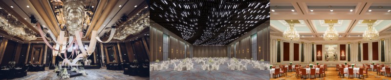 左起:上海扬子江丽笙精选酒店宴会厅、上海临港锦江国际酒店潮悦堂、上海虹桥锦江大酒店宴会厅