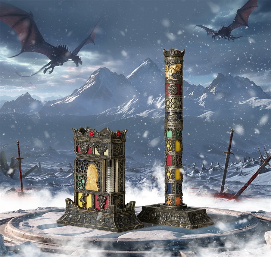 珍藏版格兰德打火机套装全球限量88件,以铁王座烈焰及家族纹样为灵感,机身镌刻九大家族徽章,4颗红玉髓及12颗黑钻镶嵌其上,通过冷暖宝石交织描绘“冰与火”的史诗传奇,机身中央铁王座以黄金饰面,在铜色的衬托下熠熠闪耀于维斯特洛的霜雪晨昏。