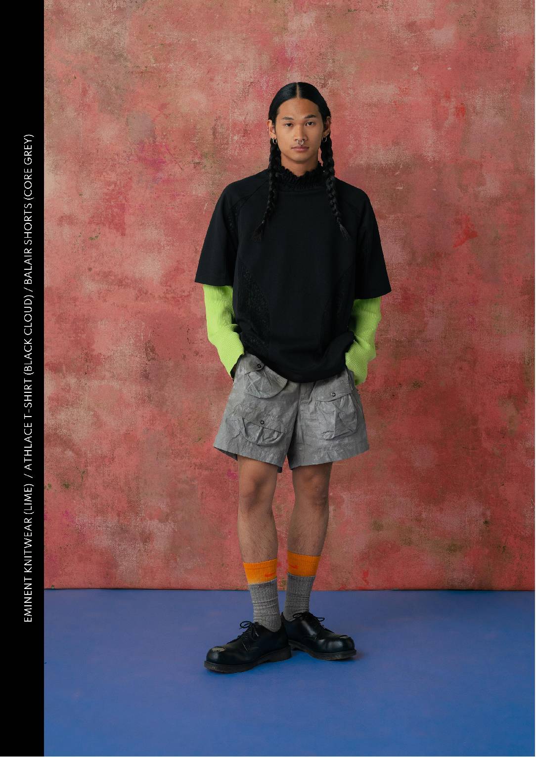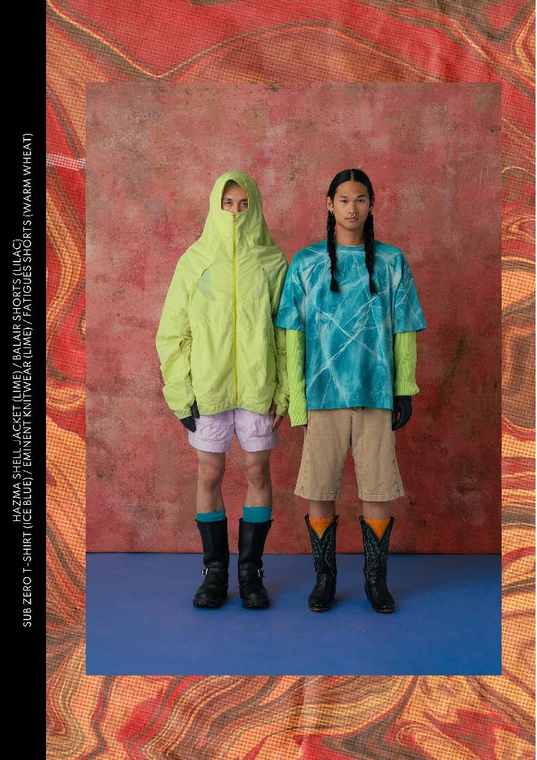 从⽓候适应到⽂化差异,A. A. Spectrum 光谱 以跨⽂化、跨时代的设计元素重构「功能服」。系列 设计中融⼊了多样化的细节:21 世纪的运动休闲⻛格、维多利亚时代的蕾丝装饰、中世纪⽃篷的兜 帽设计等,均被解构并融⼊防晒⾐、运动服与冲锋⾐中。功能性⾯料与历史元素的结合,赋予每⼀ 件单品独特的趣味与深度,等待穿着者去发掘。