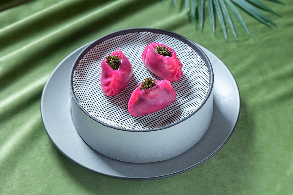 水晶饺以细腻的手法制作,荠菜的清新、黑豚肉的浓郁及虾仁的鲜嫩,三者完美结合,形成了独特的风味体验。