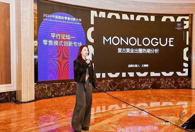 2024.11.19在上海参加2024中国国际零售创新大会,MONOLOGUE品牌主理人王婷婷女士发表《复古黄金出圈热潮分析》主题演讲,犀利指出: