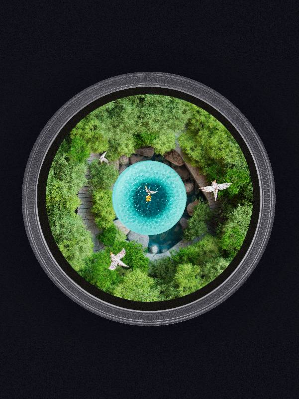 为进一步庆祝开幕,蒂芙尼特别呈现了一系列精美橱窗。其中一扇橱窗以精湛艺术手法再现成都人民公园的悠然美景,在葱郁繁茂的竹林间,让·史隆伯杰标志性“石上鸟”设计若隐若现。蜿蜒的阶梯在林间穿梭,通向一方静谧的池塘。池水清澈如镜,倒映着这位传奇大师的经典设计。这一橱窗不仅展现了蒂芙尼的创意与工艺,同时也与成都当地独特的文化意象相呼应。