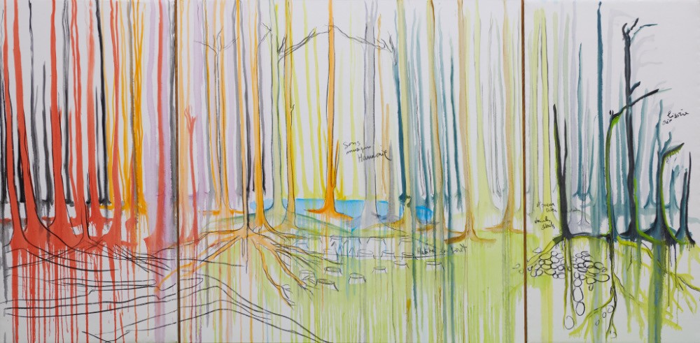 《森林》,2024年,布上油画及炭笔©法布里斯·伊贝尔。图片©马克·多马热。