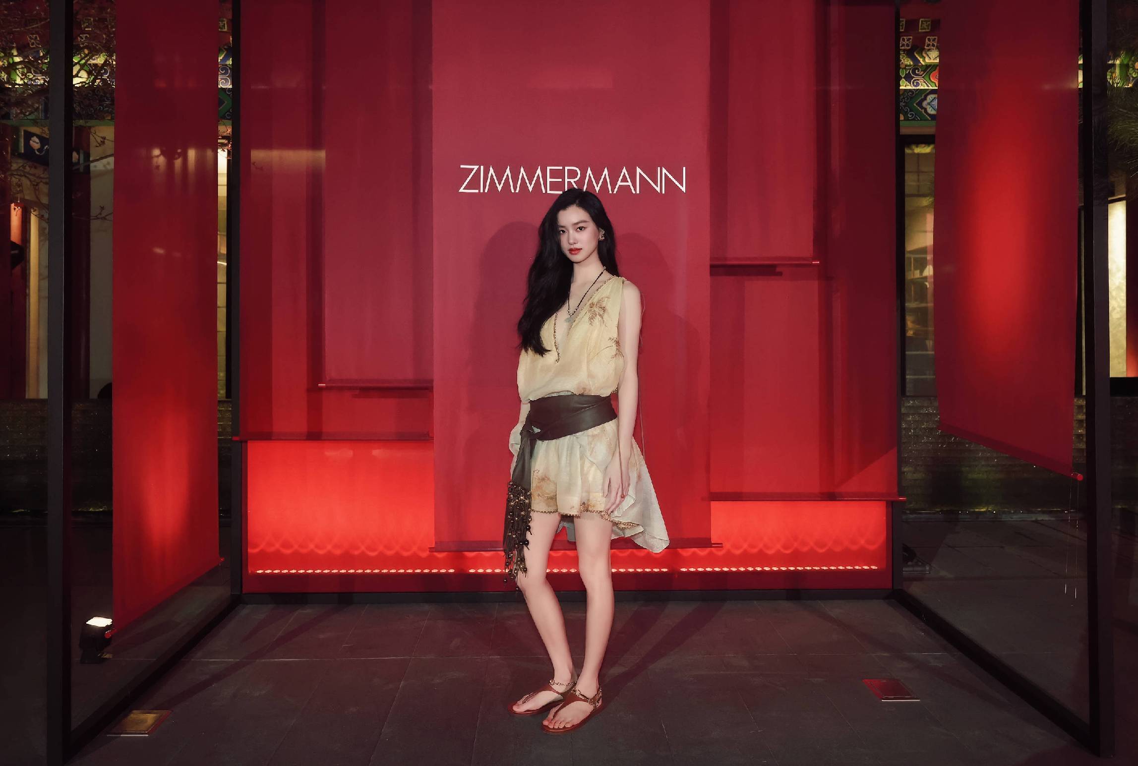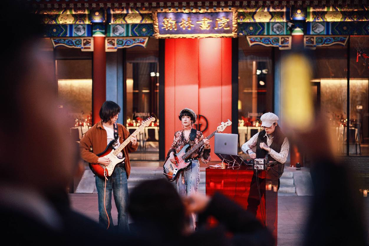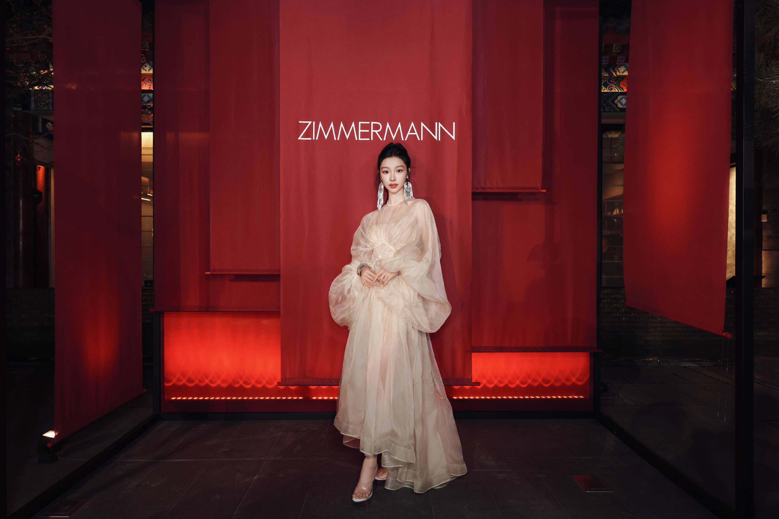 夜幕降临,开幕晚宴于历史名筑翰林书院盛大举行。步入庭院,视野豁然开朗,随着吉他手刘炀、贝斯手阿惹及DJ小豪的演奏节拍,各界名流、品牌好友云集于此共襄摩登盛宴,ZIMMERMANN的现代气息与翰林书院的飞檐斗拱相映成趣,交织出独特的诗意氛围。
