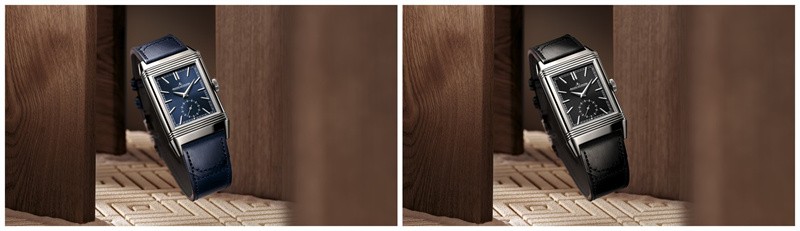 积家Reverso Tribute Duoface Small Seconds翻转系列双面双时区小秒针腕 (蓝色表盘款)(左)- 情景图