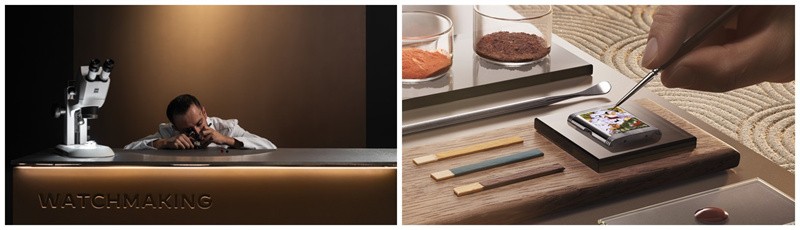 一间专门的放映室展示了积家整合式大工坊掌握的180种制表工艺,通过播放《造艺之诣》系列短片,展现大工坊的幕后故事,透过不同工匠的视角讲述各类精湛制表工艺。