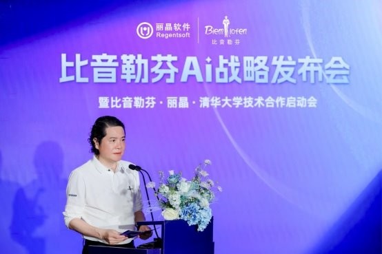 在发布会上,比音勒芬集团董事长谢秉政先生表示:“AI战略,将会100%覆盖集团业务,包括产品研发设计、商品企划、营销推广、零售培训、生产制造、仓储物流、会员管理、公司治理、财务内控等;未来三年,集团关键场景AI渗透率必须超90%,让AI像电力一样,成为比音勒芬的基础设施。”