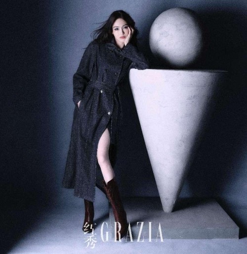 林允以同色系丹宁风套装搭配白色针织镂空背心亮相杂志大片,随性又时髦。挺阔的丹宁套装饰有醒目的绿色缝线,风格休闲又不失细节考究。白色针织背心的精美镂空花纹为整体造型增添一丝细腻柔雅气息。经典重塑,自在解锁春夏交替时节的穿搭方程式。