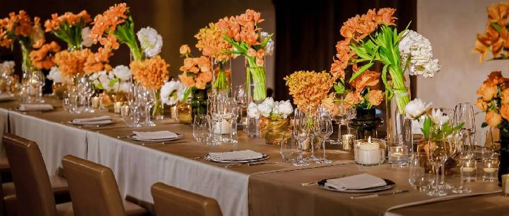 作为婚礼庆典的重要举办地,宴会厅承袭意式美学风华,精致摆台尽显典雅韵致。挑高6米的设计,令光线透过落地窗倾泻成瀑,空间开阔宏伟,为婚宴布置提供了多样的创意可能;520平方米优雅开阔的场地既可容纳300席宴会雅座,亦可化身容纳400人的站立式流动盛宴。同时,宴会厅亦可灵活拆分成两个独立的会议空间,另有两间 70 平方米董事会议厅提供独享聚会空间,一间格调高雅的阁楼酒廊以满足宾客的多种需求。酒店匠心推出融合婚宴特色的中西式定制菜单,为新人与宾客开启一场美味旅程,在光影交织的烂漫氛围中,共同编织隽永婚礼记忆。