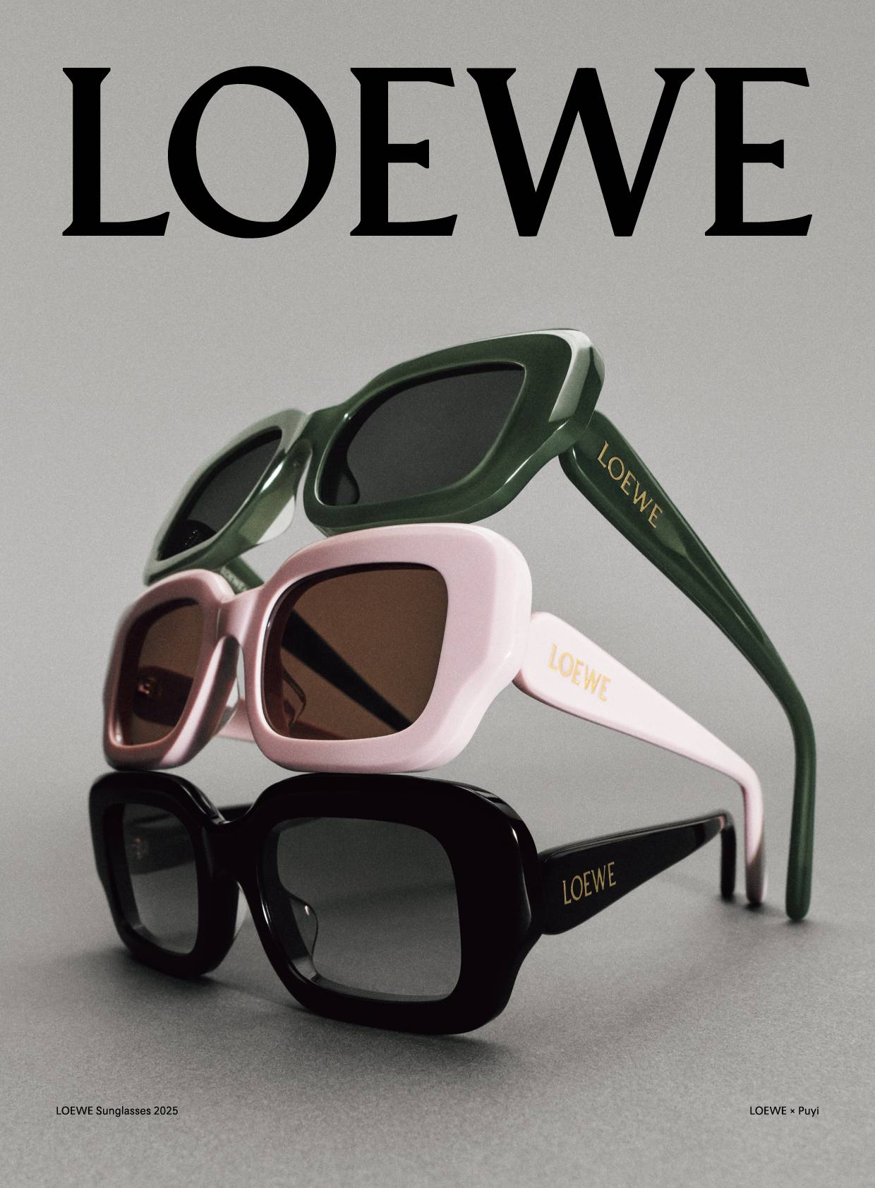 LOEWE x PUYI独家联乘款太阳眼镜将于2025年5月15日起,在中国内地、香港及澳门特别行政区、台湾地区以及新加坡指定的溥仪集团旗下眼镜店发售。