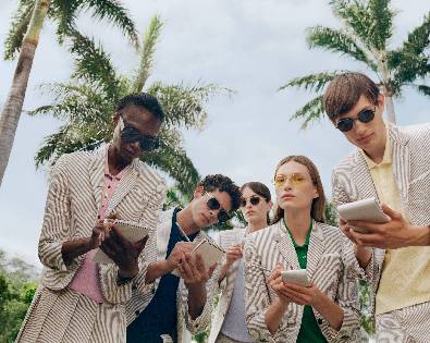 配饰设计聚焦于新款深棕小牛皮软质mr. thom手袋。追溯至品牌起源,mr. thom手袋以其标志性廓形、精湛细节与匠心工艺著称,此番以可拆卸肩带的全新非结构化造型亮相。米白色帆布条纹中型工具托特包将实用性与精致感完美融合。小牛皮复古运动鞋与鹿皮学院乐福鞋,为男女衣橱提供无缝搭配。当阳光倾泻时,钛金属与醋酸纤维材质眼镜,通过多样镀膜与镜片色彩完善盛夏造型。