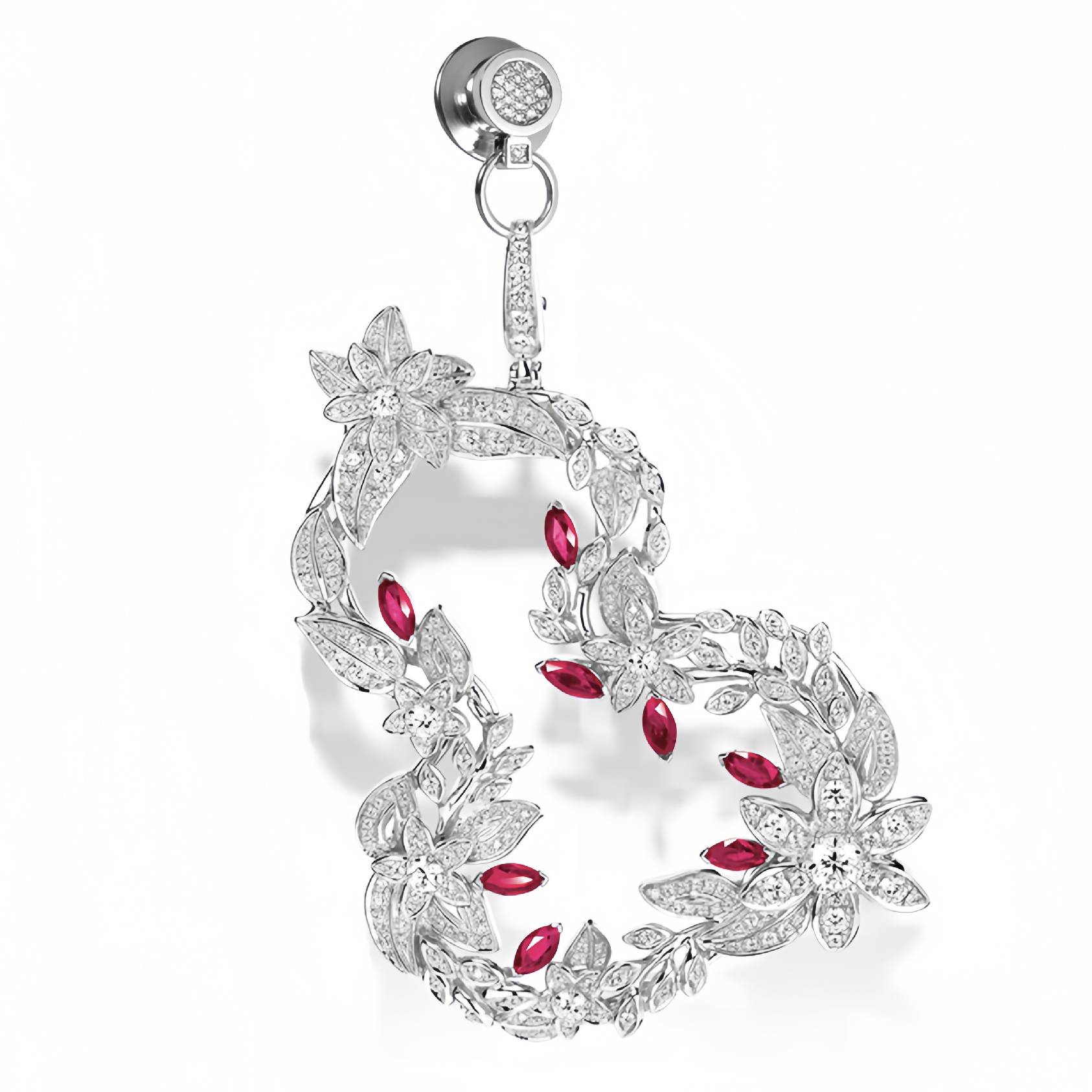 Wulu Garden高级珠宝系列 18K 白金钻石及红宝石胸针
