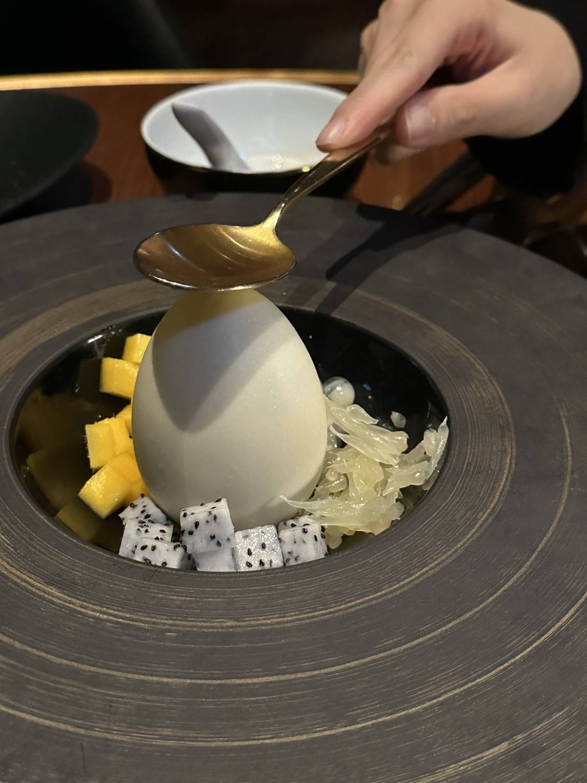 夜幕降临,在DIVA嬅餐厅开启粤菜新体验。置身于天际线中的Art Deco空间,一边品尝 “经典新作”的粤式创新菜品:招牌脆皮玻璃妙龄乳鸽色泽油亮、皮脆肉嫩;飘出阵阵烟熏香气的猪肋排扎实脆嫩;粤式糖水甜品杨枝甘露以蛋形分子雪糕包裹,一勺击破,甜香四溢,视觉惊喜延续至味蕾尾声。