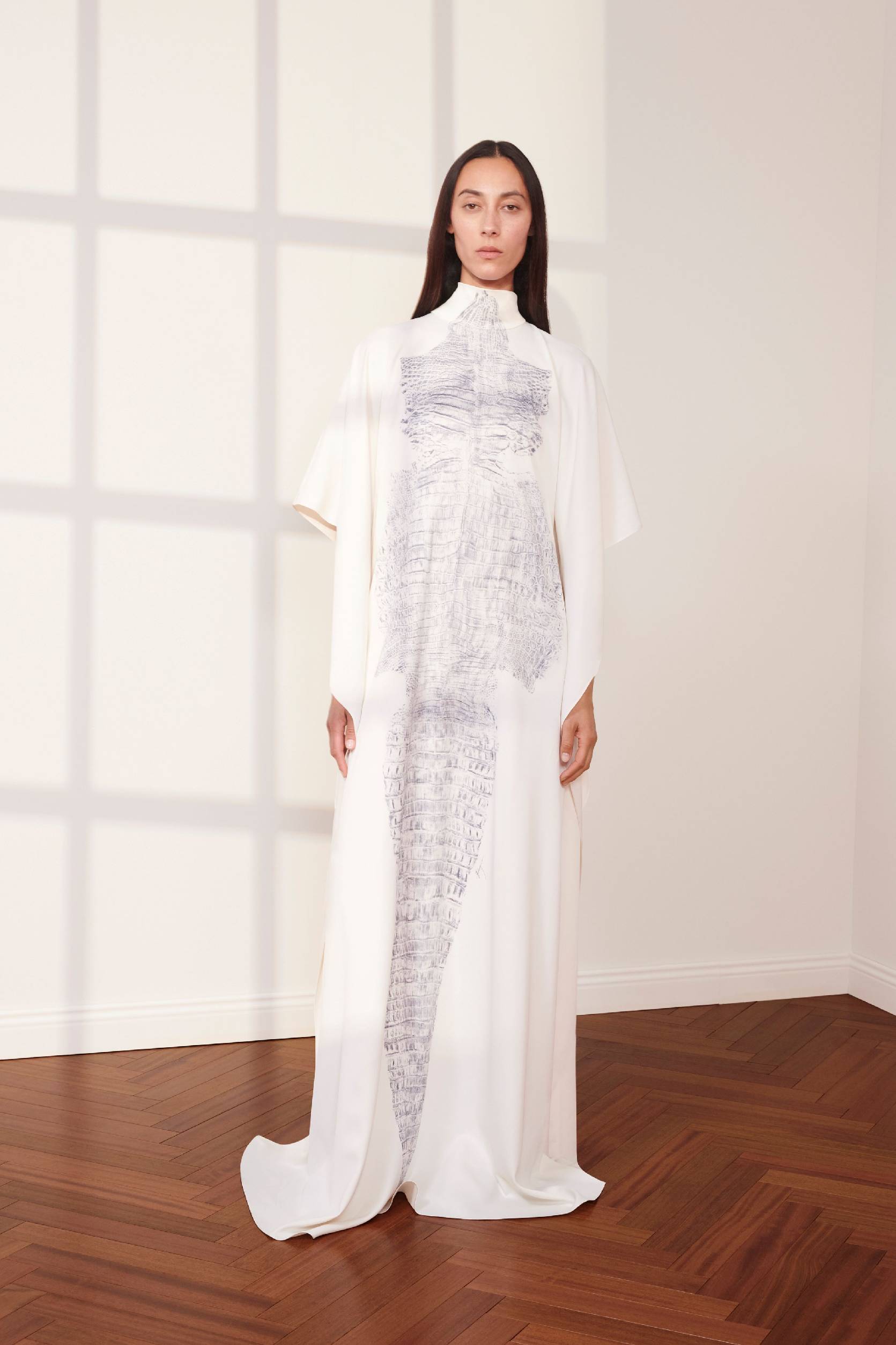 曾被视为异域风情的动物印花与皮革,如今化身连衣裙上经垂褶扭曲的图案,或衬衫及优雅长袍的雅致点缀。鳄鱼纹压花工艺自男士Tramezza牛津鞋鞋头延展,至鞋面处渐变为亮面皮革质感。源自品牌九十年代典藏的围巾印花,为围巾式手拿包注入灵动活力;Ferragamo传承传承元素被重新诠释:缔造羊绒连衣裙的流苏裙摆,或成为羊毛托特包与肩包上的点睛之笔。系列衣橱呈献备受欢迎的隽永之作,彰显低调谐美的多元风格。