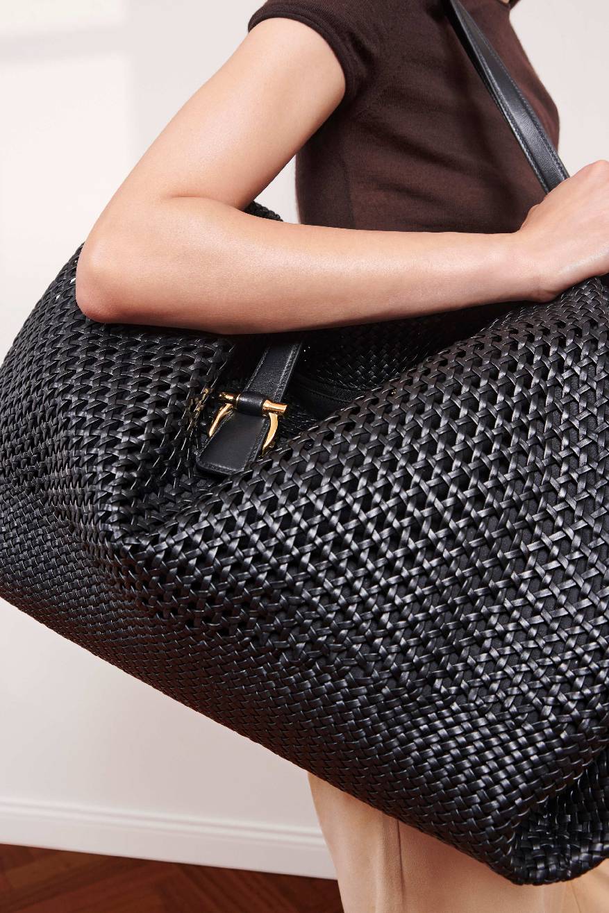 手袋系列中,多功能购物袋采用焦糖色鳗鱼皮材质,搭配金色Gancini锁扣;柔和圆润的水桶包从九十年代廓形中撷取灵感,焕然一新。经典Soft Hug手袋配有手工编织皮革提手,容量充裕的购物袋则以维也纳稻草图案皮革编织而成,塑就慵懒休闲造型,淋漓彰显Ferragamo的匠心工艺与深厚传承。男士手袋中,水洗帆布购物袋饰有Lucio Venna于1930年代为品牌重新设计的标识;单肩包则压印鳄鱼纹,更添迷人魅力。