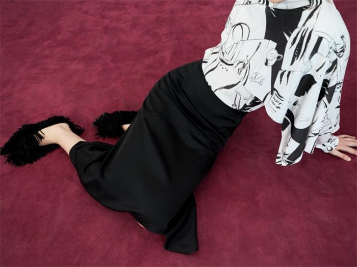 JNBY将佩索阿笔下的里斯本街景被解构为时装语言:黑白拼贴漫画将雾中行人、咖啡馆灯牌与杂居房间碎片画面重组,局部轮廓勾勒女性剪影。漫画拼接上衣搭配不规则压褶设计半裙,或垂落黑色修身长裤,不论是日常通勤、城市夜游还是周末聚餐看展,为都市女性多彩生活增添几分品味与格调。