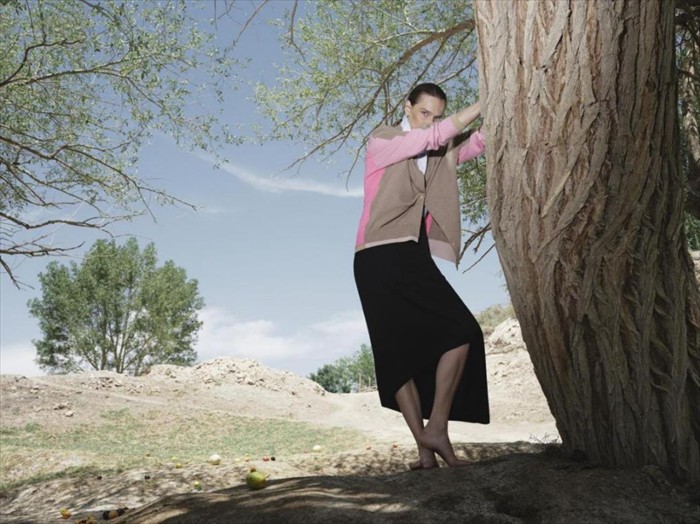 JNBY25秋冬系列,将佩索阿笔下“无数瞬间的聚合”化为可实现的设计语言,以一衣多穿为表现,例如褶皱、穿插与打结,诉说着交错编织的设计语言。轻盈透气的长袖上衣,前片交叠缠绕的设计,解开时是垂坠的宽松廓形,超长袖设计及不规则领口,搭配高腰西裤或牛仔裤,修饰身材比例,同时随意切换造型。