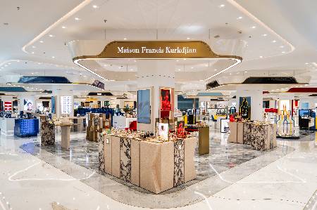 梵诗柯香(Maison Francis Kurkdjian)西南首家精品店于成都SKP以「香氛衣橱」为灵感核心,开启一场跨越时空的感官对话。店铺承袭品牌全球统一设计语言,将巴黎建筑美学巧妙交融,以卢泰西亚石灰岩与鎏金线条勾勒轮廓,卡拉卡塔紫天然大理石香水吧宛若一件艺术装置,点缀其间的红色丝绒高脚椅,为每位踏入其中的顾客营造出法式高定香氛的沉浸式体验。