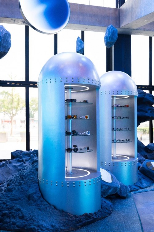 步入OAKLEY HUB,入口处巨大的品牌标识引领探索者们踏上未来造物的探索之旅。场馆中央设有巨大的创世琥珀装置,其灵感来源于OAKLEY欧克利科幻短篇《Future Genesis》及品牌短片中象征着未来造物的神秘琥珀。琥珀周围则创意呈现两款潮流文化休闲眼镜——PLANTARIS潮流文化休闲眼镜,镜腿末端的设计灵感源于青蛙跳跃时的肌肉动态,搭载柔软硅材质的可调节镜腿与可拆卸鼻托,出色防滑性能带来舒适的佩戴体验。LATERALIS潮流文化休闲眼镜,则巧妙融合复古风格与现代设计,全包覆式镜框提供优秀的抓合力与舒适性。两款潮流文化休闲眼镜均搭载Prizm™谱锐智™镜片技术,呈现清晰的视觉体验。探索者们可在形似太空舱的眼镜展示仓中挑选并体验眼镜产品,与 OAKLEY欧克利共赴的全新视觉旅程。