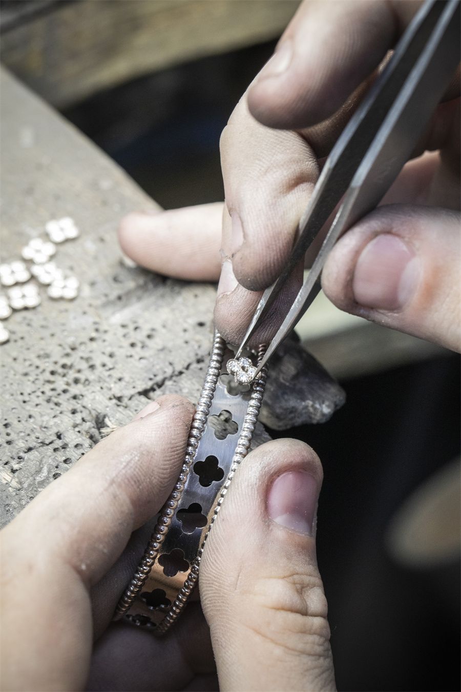 Perlée系列作品凝聚Van Cleef & Arpels梵克雅宝的精湛工艺,展现高级珠宝世家的专业造诣。每一件作品都汇聚宝石雕刻师、珠宝工匠、宝石镶嵌师及抛光工匠的匠心技艺。