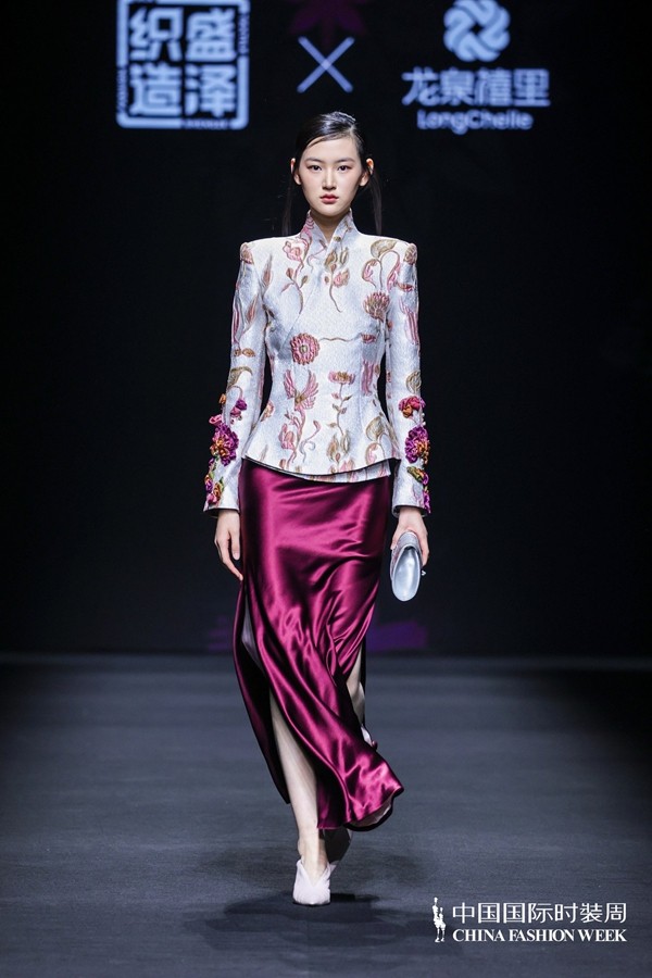 中国纺织工业联合会副会长阎岩在致辞中表示,作为区域品牌工程的核心,“盛泽织造”不仅是一张产业名片,更是一项系统工程。它以本土优质面料为根基,以趋势研究为前瞻引领,以设计创意为表达路径,通过深耕设计、技术创新、品牌建设等多维度领域,持续赋予了“织造”更广阔的审美空间与深层文化表达。今天的发布秀不仅将集中展示盛泽原产面料与原创设计在时尚产业链前端的独特优势,更以“融通”万象的视野与格局、开放多元的设计表达、前瞻引领的趋势洞察,推动中国面料设计与品牌塑造走向更高端、更广阔的价值版图。这是盛泽在中国国际时装周的高光时刻,更是盛泽作为国内重要面料高地、时尚策源地的生动注脚。
