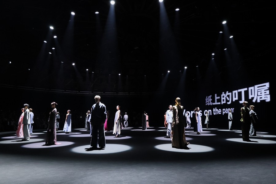 作为本次活动亮点,北京服装学院副校长、全国十佳设计师邹游以“运河之韵”为灵感来源,发布其入驻张家湾设计小镇后的首场专场秀演《纸上的叮嘱》。该系列作品以运河漕运文化为灵感,借助服装的结构与材料重新展开一段历史的剖面。让当下与过往,在结构的交错与材料的类比中轻轻叠合。秀演以服装为舟,载着传统驶向当代审美之岸,诠释文化传承的真谛——在解构与重建中,让历史焕发新生。