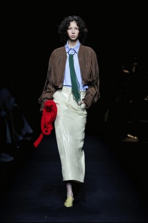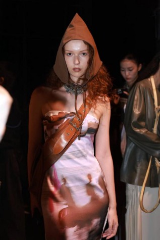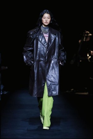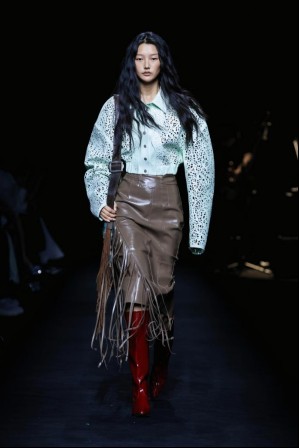 本季设计中,大廓形的biker jacket、bomber jacket和trench coat明显偏向实用主义。在前卫的表象之下,“Balance”平衡感和“Harmony”和谐感展现出设计师一如既往的扎实功底。流苏和绳子作为核心元素被反复运用,进行抽象或具象的表达。在草原上,绳子既是牛羊赖以生存的牧草,亦如牧民放牧的鞭子,缠绕着游牧生活的真实痕迹。而那松弛垂坠的绳态是生命的象征。