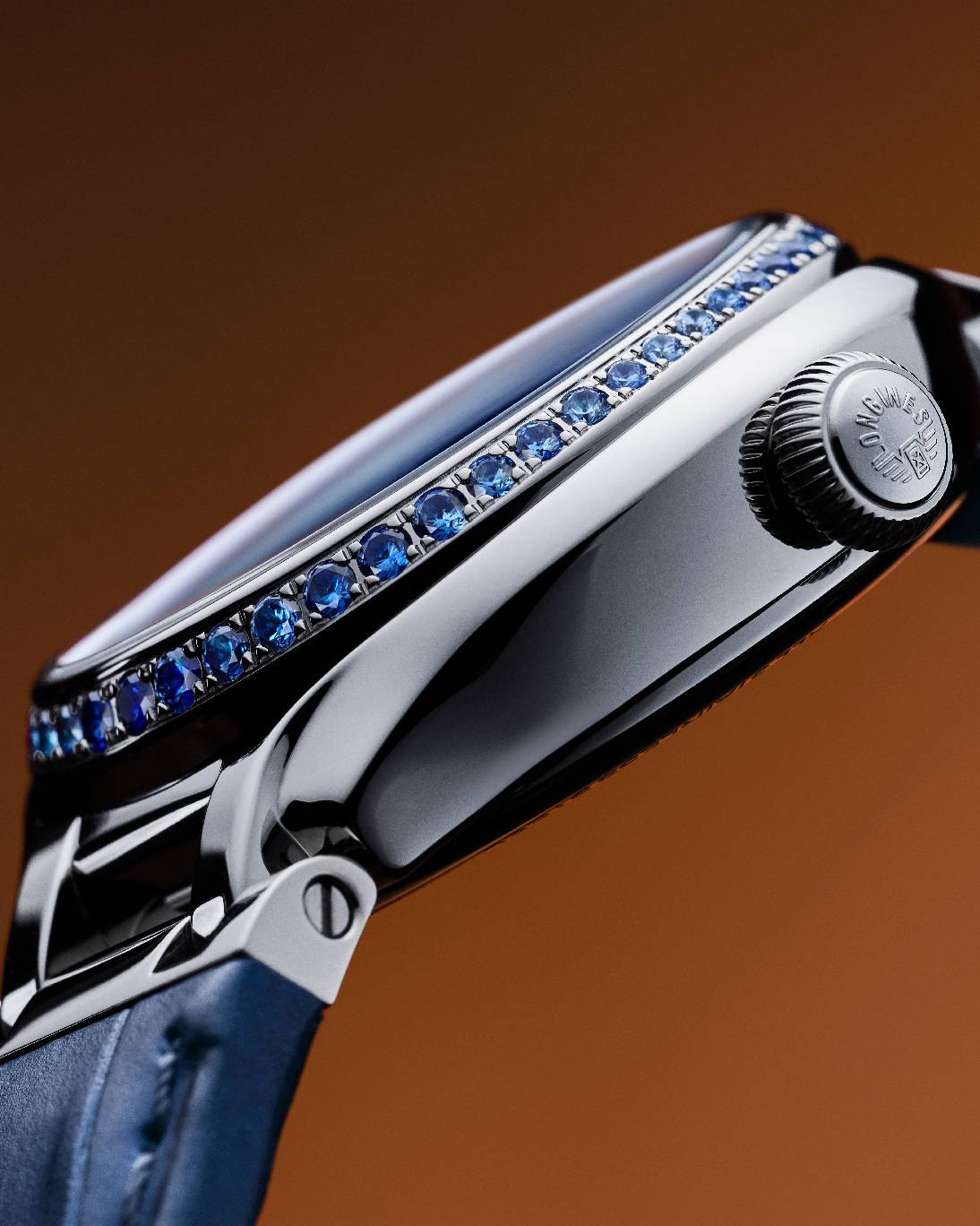 表冠设计极具诗意,气泡般圆润的造型令人联想到满月。环绕表面的新月纹饰,与月相复杂功能遥相呼应。提供精钢、间金材质组合,或镶嵌钻石与蓝宝石的款式,在保持精致比例的同时,呈现奢华的多元表达。