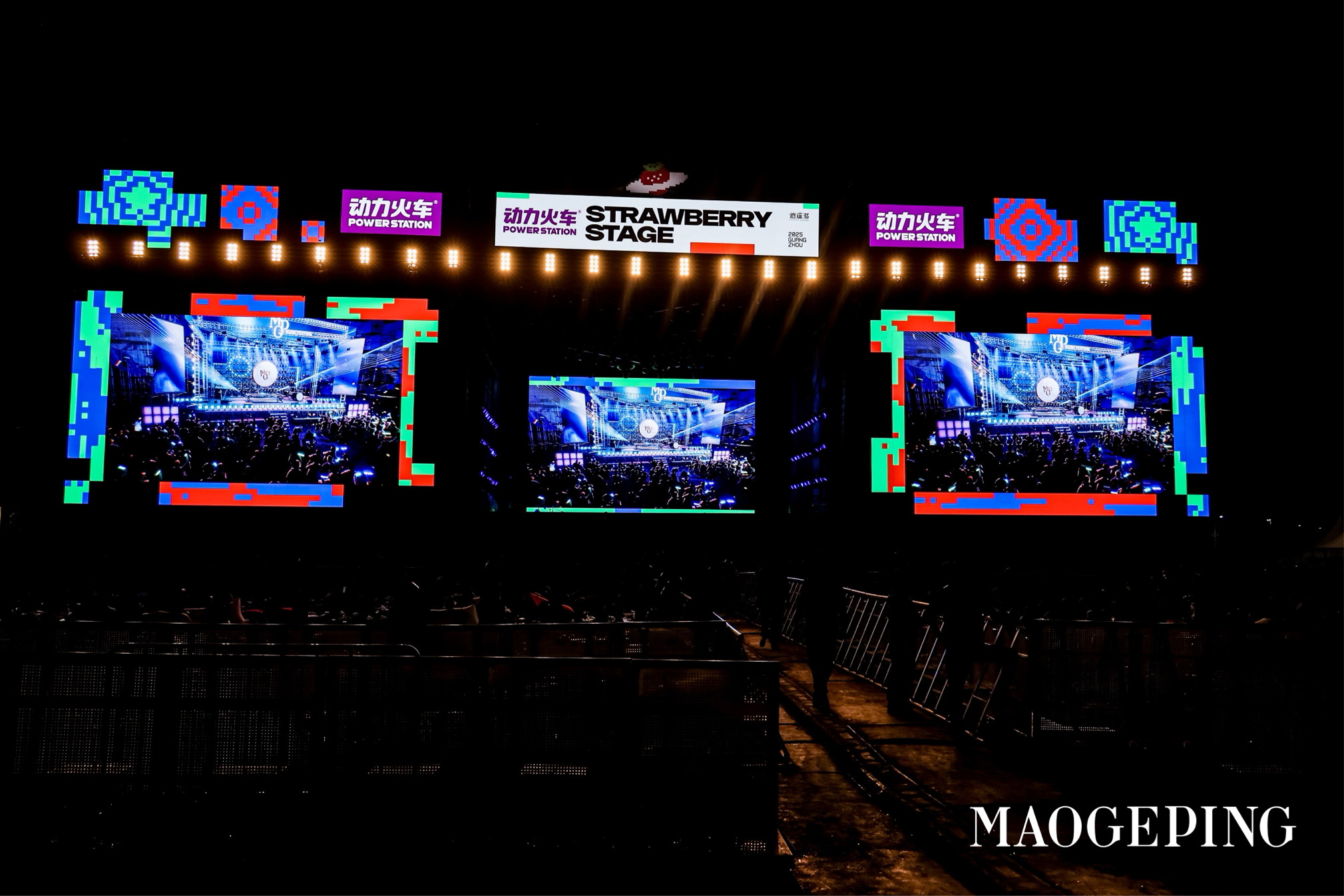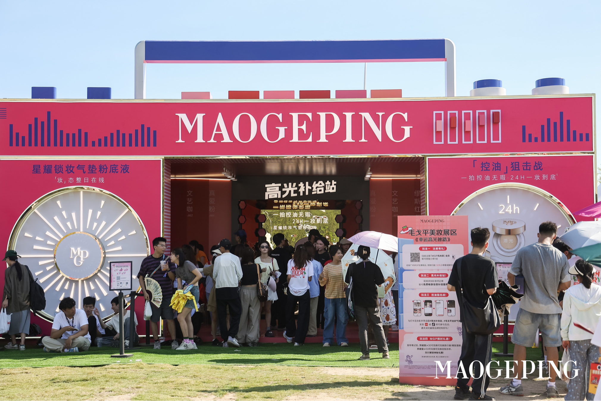 强劲鼓点震动心脏,贝斯音浪撼动夜空,毛戈平“高光补给站”以巨型复古音响造型亮相音乐节现场,与音浪同频、与人潮共振。展台左侧“音响出声口”以金属光泽与跃动霓虹交织,将跃动旋律转化为可见的流光轨道,构建出一个充满未来感的沉浸式声场。这一融合科技感与美学表达的视觉效果,不仅传达出毛戈平美妆先锋的东方美学概念,更瞬间锁定全场目光,成功助力品牌在草莓音乐节C位“出道”,成为现场最具话题性的潮流焦点。