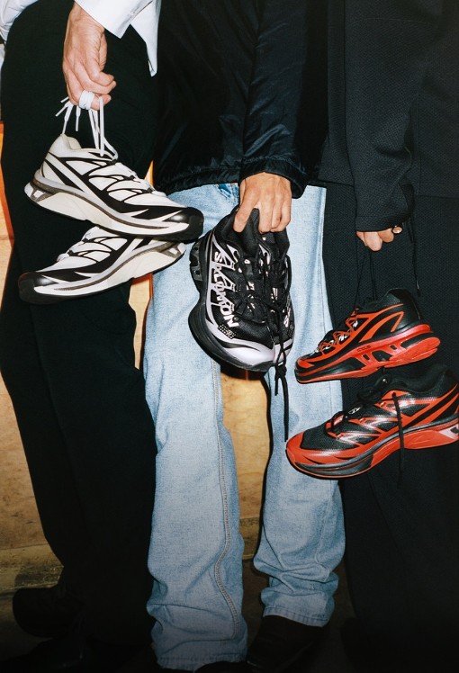 鞋履方面,本次全新打造XT-MM6系列,鞋身处饰有巨型Salomon logo,鞋头处 MM6 数字标志彰显合作身份。XT-MM6推出三种配色:纯白搭配黑色细节、全黑点缀银色,以及亮红色与黑色组合的版本。ACS PRO则提供两款选择——从白色渐变至灰色的清爽设计,另一款则采用高饱和度的黄黑撞色,赋予整体造型更强的视觉张力。