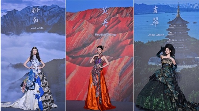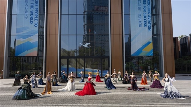 20位厦航乘务员身穿由张肇达Mark Cheung设计师设计的中国华美服饰,将中国大美河山,大气磅礴的东方之美与民航人的职业精神巧妙融合。不同的服装颜色代表着中国不同的民族文化,每踏出一步,画面同步渲染出相应的山河画卷,犹如人在画中游。现场观众屏息驻足,现场掌声不断,共同见证了这场融古今之艺,装东方之魂的美学盛宴。这既是中国设计师以时装语言对话世界,更标志着张肇达Mark Cheung将中国文化推向国际视野的又一次突破。